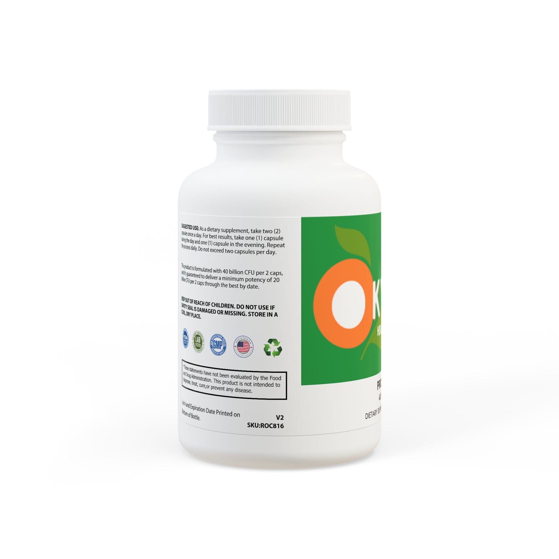 Key ingredients include a Proprietary Blend of Probiotic Bacteria with MAKTREK® (Bi-Pass Technology), Lactobacillus acidophilus, Bifidobacterium lactis, Lactobacillus plantarum, Lactobacillus paracasei, Marine Polysaccharide Complex, and Fructooligosaccharide® (FOS).